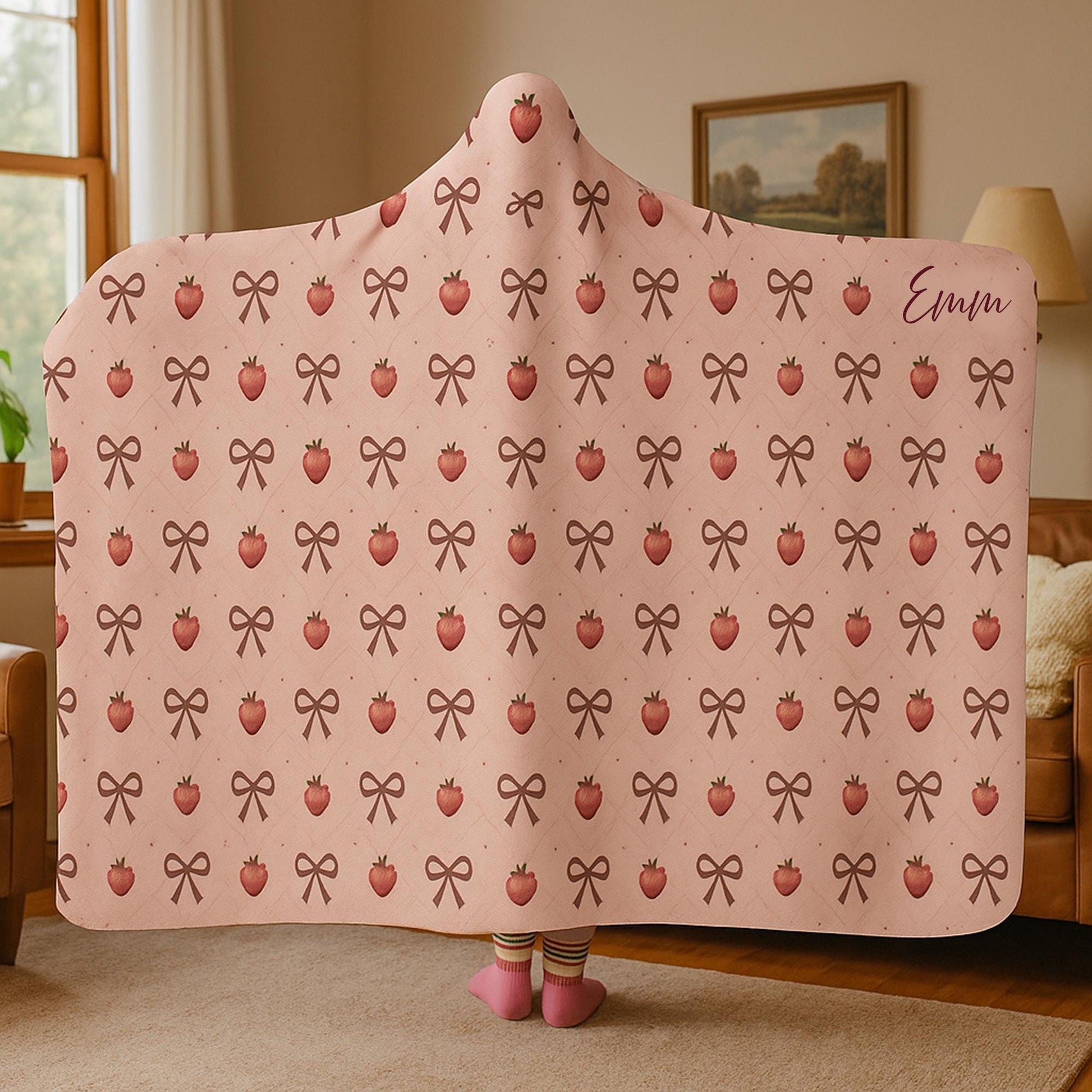Strawberry Sherpa Hooded Blanket β Personalized Wearable Throw, Christmas Gift