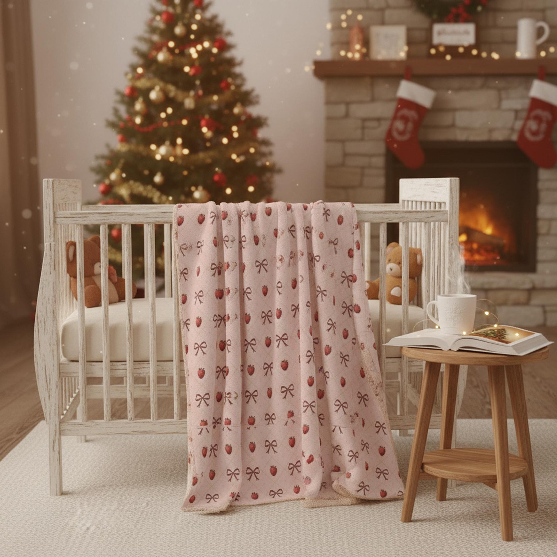 Wrap yourself in sweetness with our Strawberry Sherpa Hooded Blanket, a soft and cozy wearable blanket perfect for Christmas mornings, self-care nights, or meaningful gifts for her. Featuring our exclusive strawberry and bow print and lined with ultra-plush sherpa fleece, itβs as cute as it is cozy β the perfect mix of kawaii, cottagecore, and comfort.
